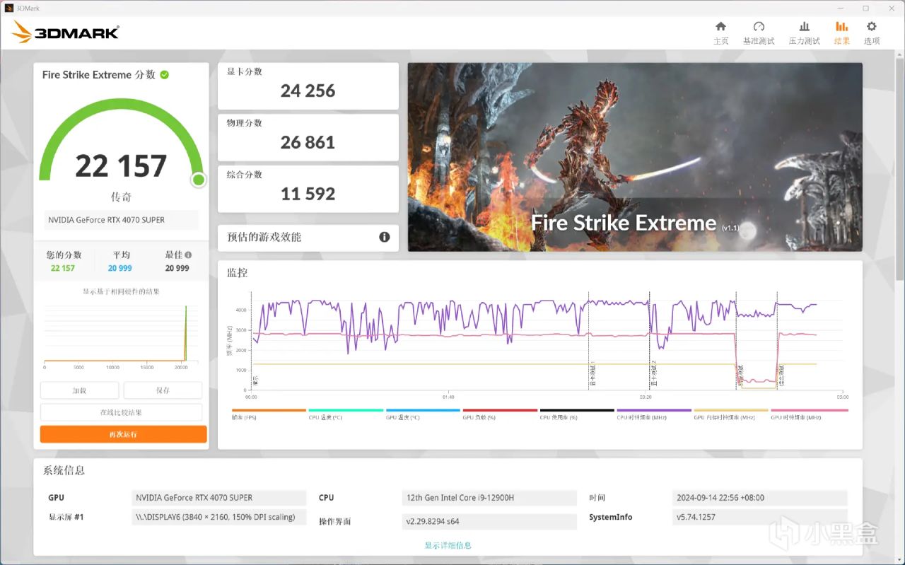 ▼在Fire Strike Extreme(DX11)下跑分22157,顯卡分數24256,物理分數26861。