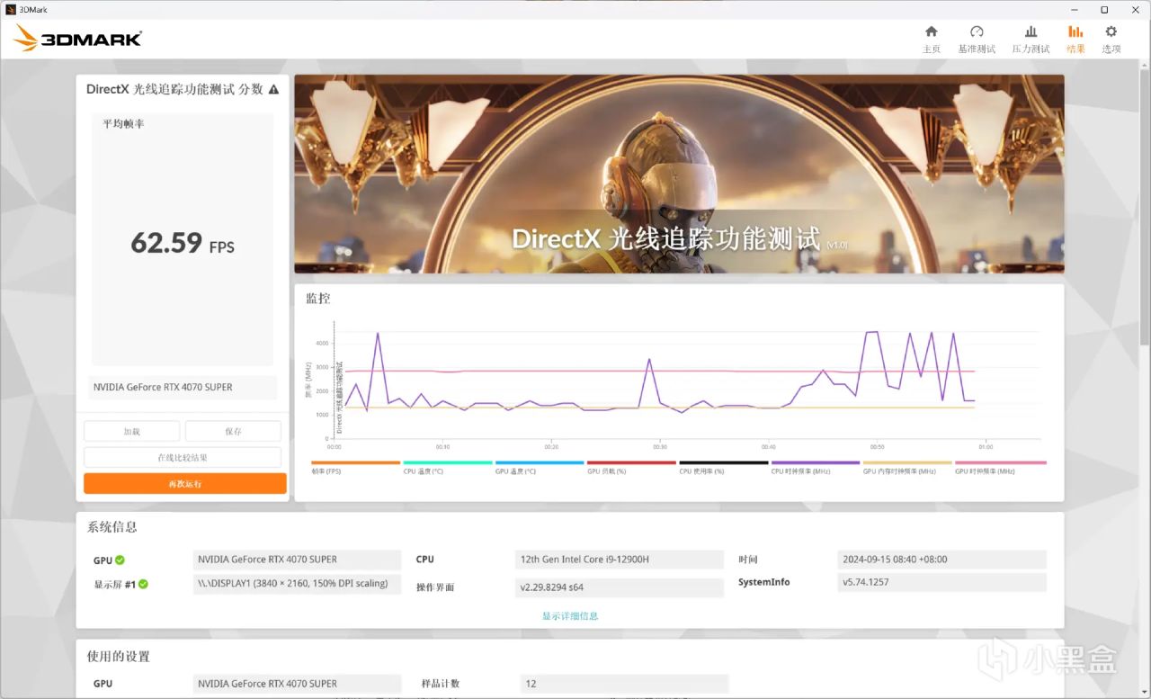 ▼DirectX 光線追蹤那個測試分數62.56FPS,開啓光追也能暢玩遊戲。