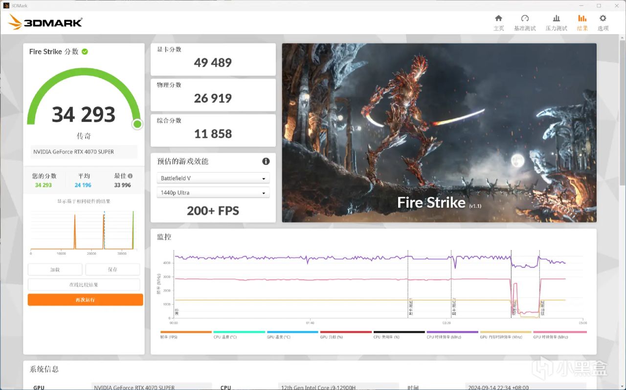 在Fire Strike(DX11)下跑分34293,顯卡分數49489,物理分數26919分,能夠以200幀以上的幀率運行《佔地5》。