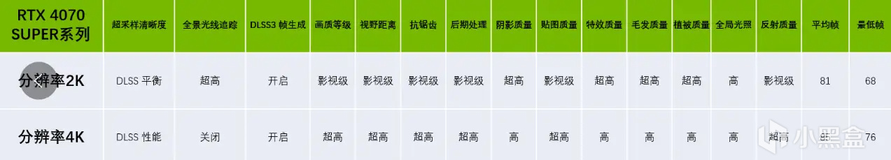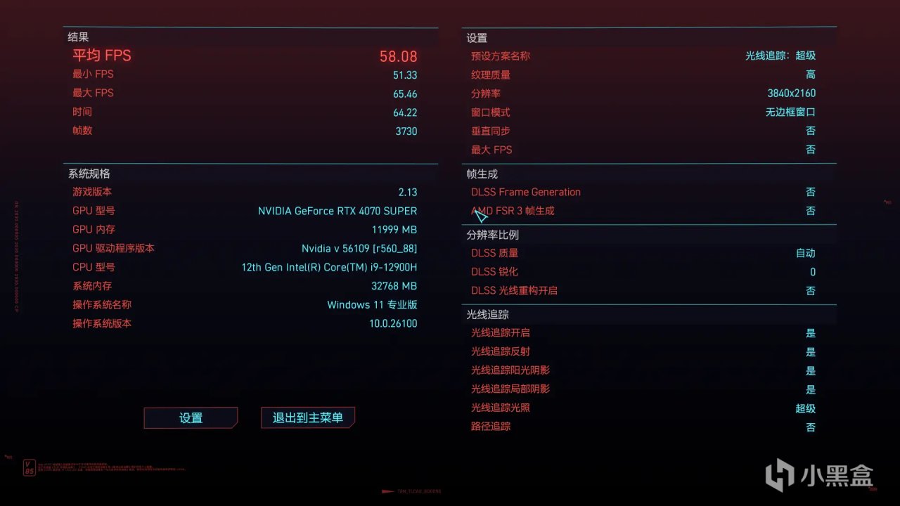 ▼4K分辨率下平均幀率58.08幀,最小幀率51.33幀,RTX 4070Super是當之無愧的4K級別顯卡。