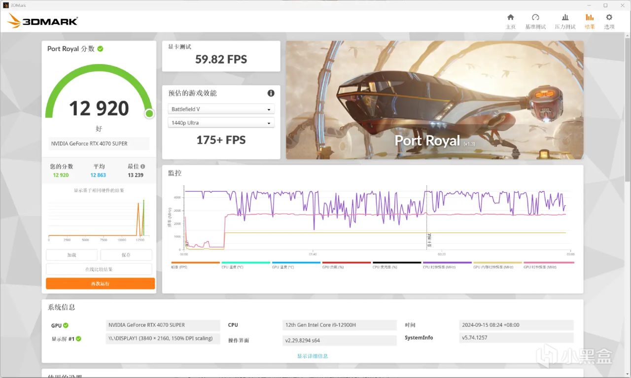 ▼Port Royal分數12920分,顯卡測試成績59.82FPS.