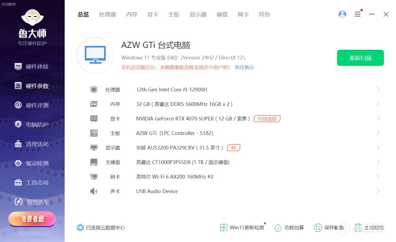 零刻GTi12+EX擴展塢+索泰4070Super天啓性能測試