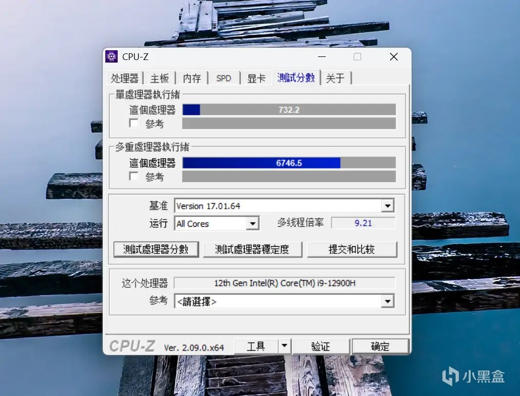 ▼使用CPU-Z對處理器性能進行簡單的跑分,最終得出單核成績爲732.2,多核成績爲6746,全面領先AMD 8845HS。
