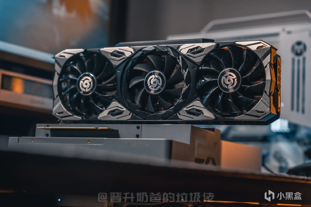 ▼顯卡我這裏用了索泰GeForce RTX 4070 SUPER 天啓OC,經典的黑銀配色,顯卡正面的黑色部分則幾乎都是風扇扇葉和中間風扇的圓形RGB燈帶。