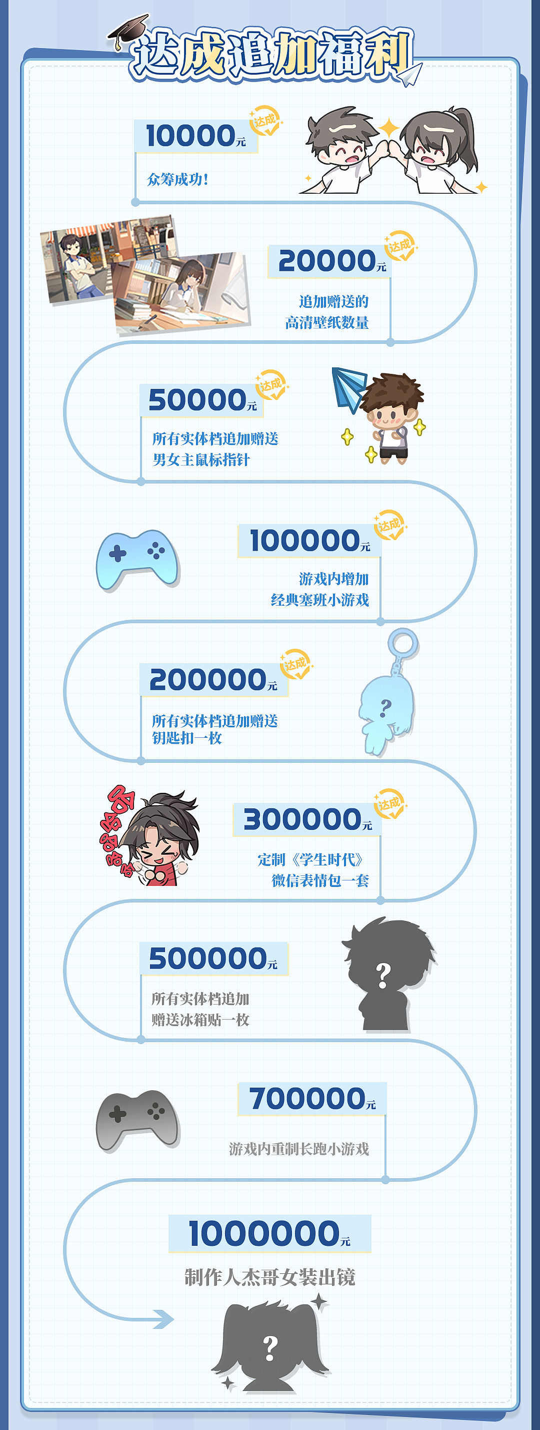 《學生時代》當時一天之內幹出了20w的衆籌金額屬實讓我有點驚訝,這款其貌不揚的作品悄悄地就登上了摩點遊戲榜前幾。