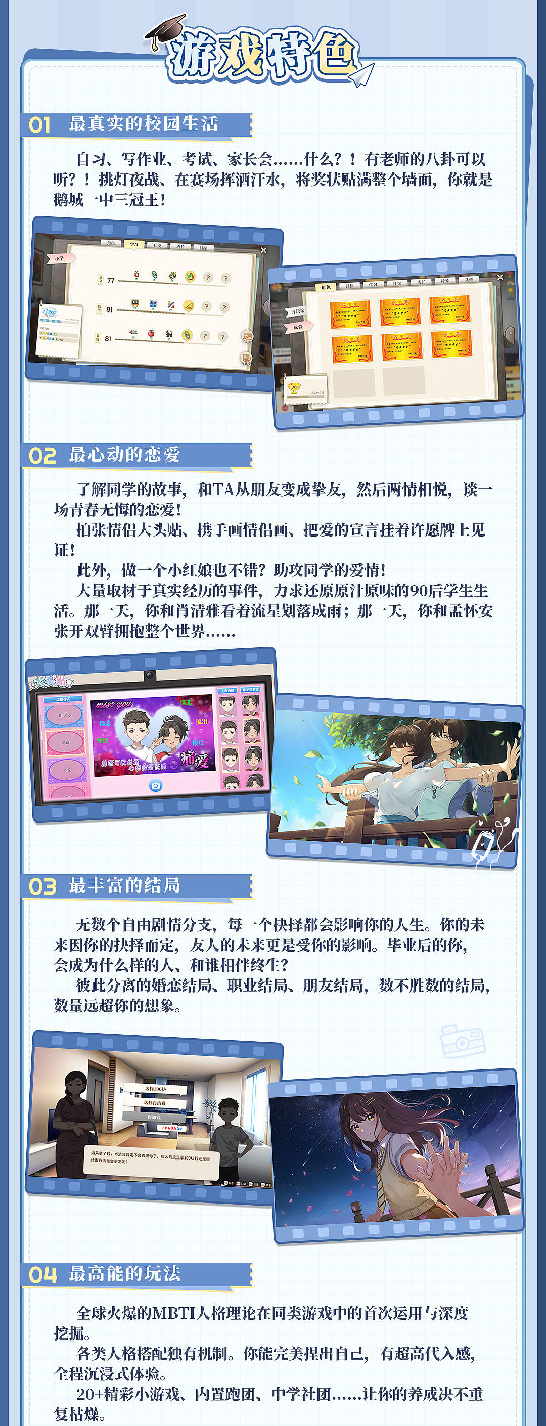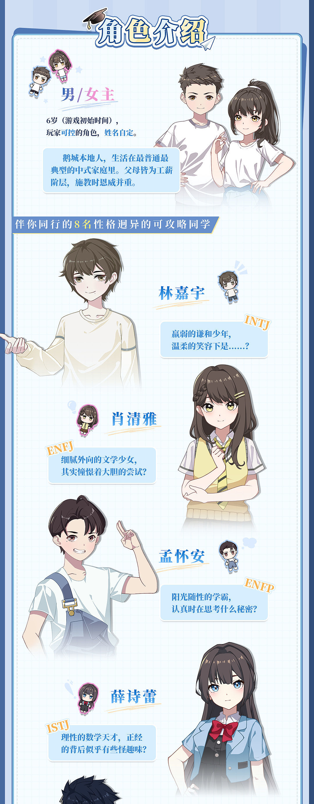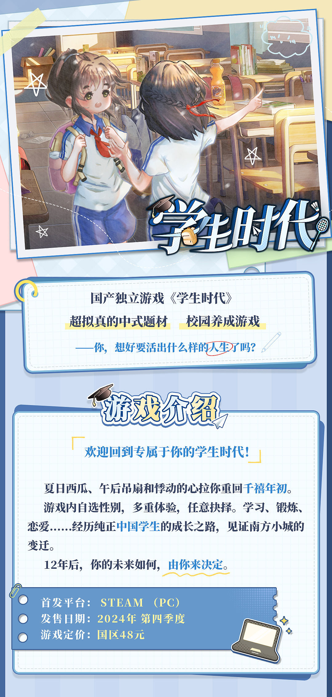 《學生時代》是一款模擬養成遊戲,從6歲開始運營12年直到自己的角色成年。