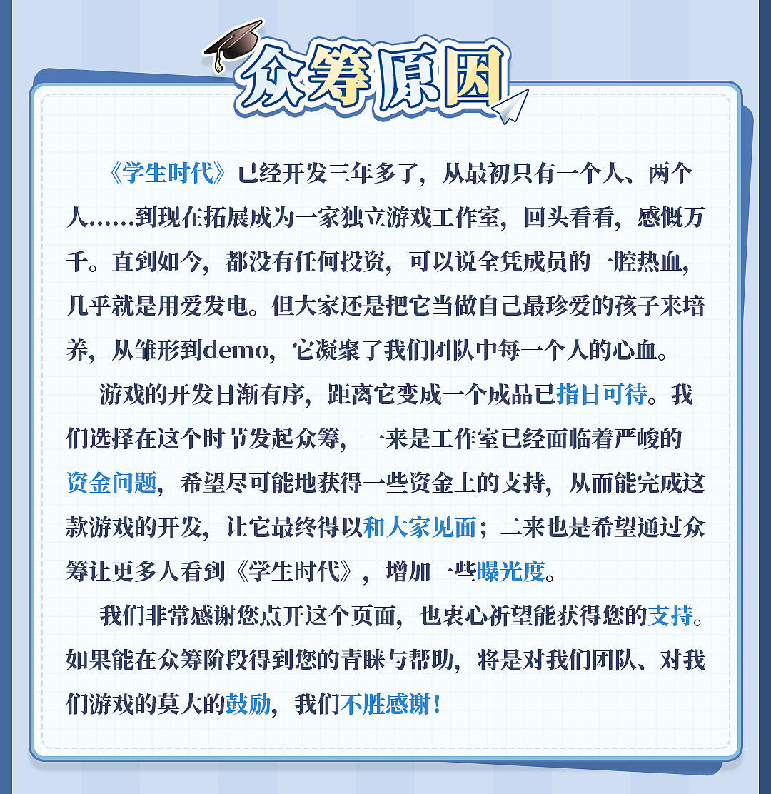 他們理想中想做的《學生時代》是這樣的:更高的遊戲性以及更爲豐富的劇情。