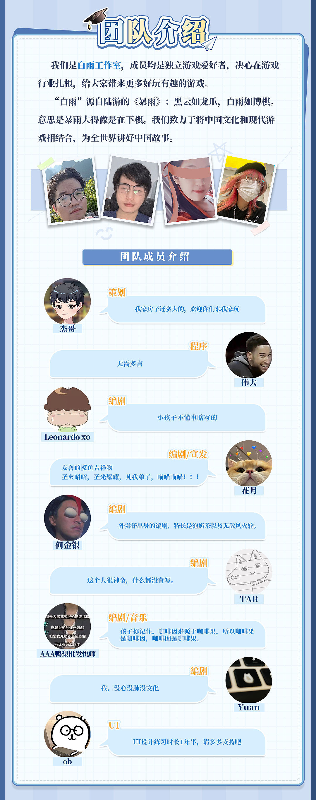 從這個摩點系列的設立初衷來看,只要是有可能讓大家感興趣的遊戲我都會分享,那就發個帖子吧,纔不是因爲我發現了製作組白雨工作室有入駐黑盒呢。(傲嬌已經退環境啦凡三歲)