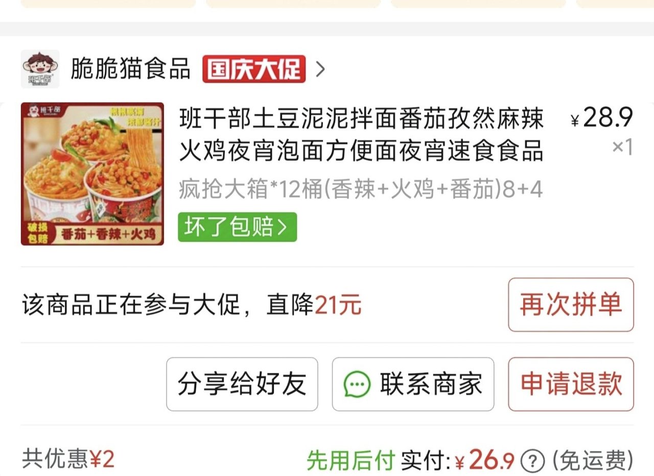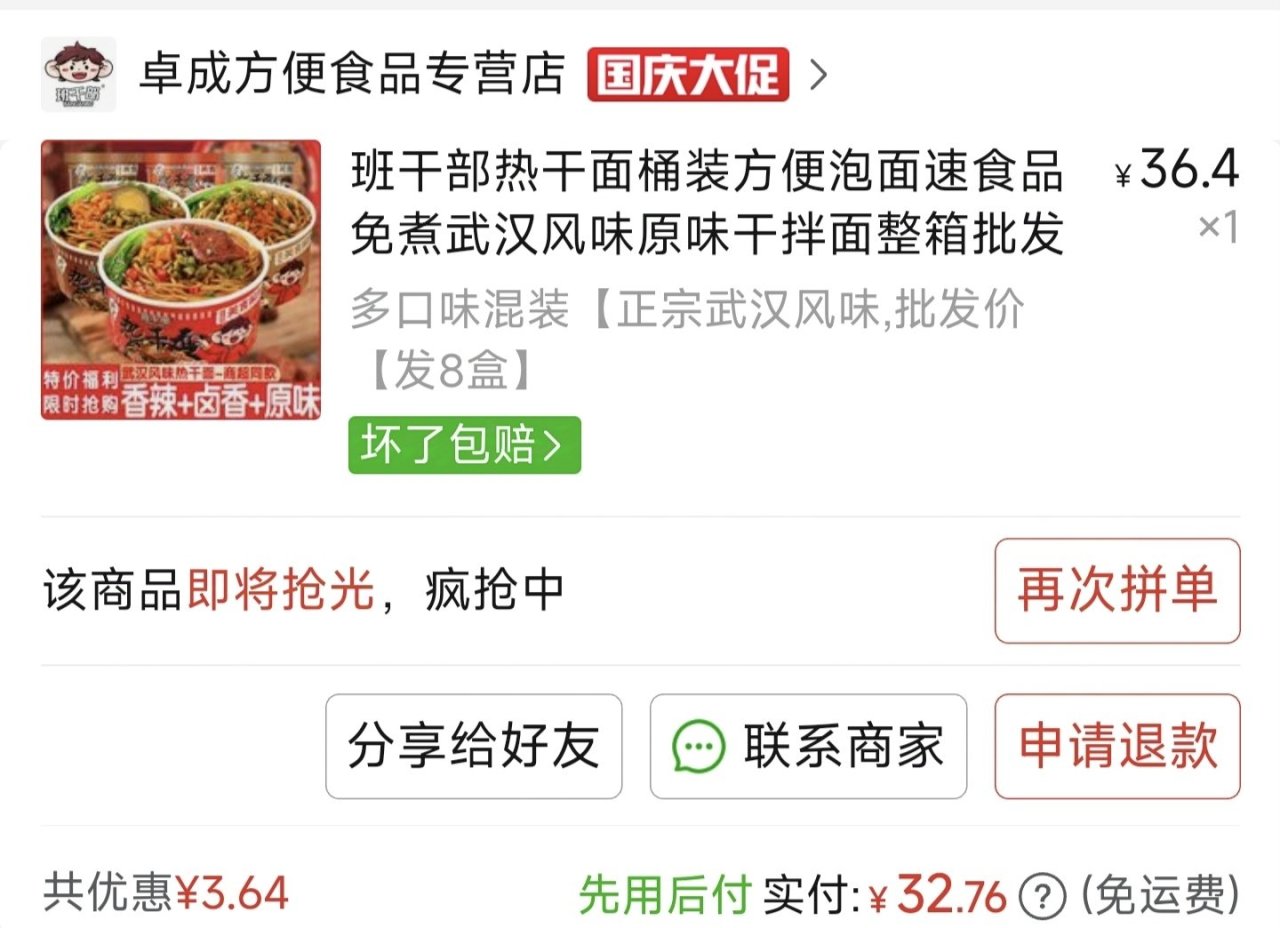 黏黏糊糊的拌面,老好吃了,三种口味特色都很鲜明,原价折合2.4一桶,性价比拉满。缺点是注水线不太标准,很容易就弄成汤面了。