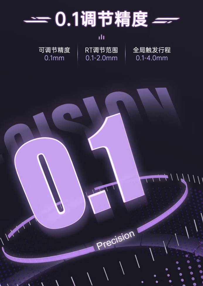 AK820 MAX拥有0.1mm调节精度,支持40段(0.1-4mm)触发键程可调,适应不同用户的输入习惯。有线版支持8KHz低延迟,确保了在游戏中的快速响应。