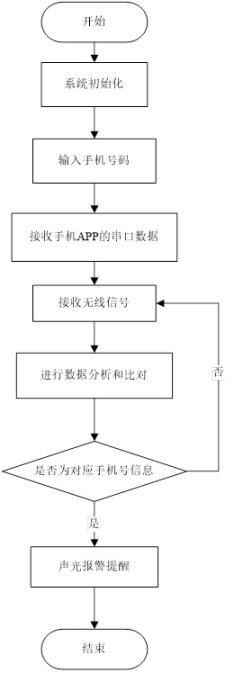 在标签端,寄快递之前通过串口将收件人的手机号写入标签端中。掉电不丢失,只需要存一条即可。标签端就会不停的查询外来信号,一旦发现信号中的数据是写入自己内存的手机号则蜂鸣器响,同时LED闪烁。直到手持端的信号消失,则蜂鸣器停止响,LED熄灭。预留一个手机充电口的micro接口用于充电同时也可以用于写入手机号。写入手机号的协议是串口协议。手机号写入成功之后串口要返回一句“Write to successful”,并且本产品具有电源开关,再不使用时可以关闭,减少耗电。