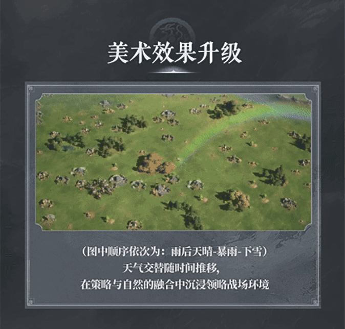隨着沙盤玩法的豐富,沙盤的美術品質也迎來了升級,增加了暴雨、大雪等天氣效果。