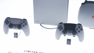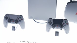 这些照片展示了周年纪念版的PS5 Pro和PS5,还有限量版的DualSense以及DualSense Edge控制器和外壳。近距离的照片展示了Edge控制器上令人惊叹的细节,触摸板上有小三角形、圆形、X形和方形图案。Pro版本身隐藏着极小的“30周年纪念”字样,在控制台内部的“折叠”部分还有更多微小的图案。