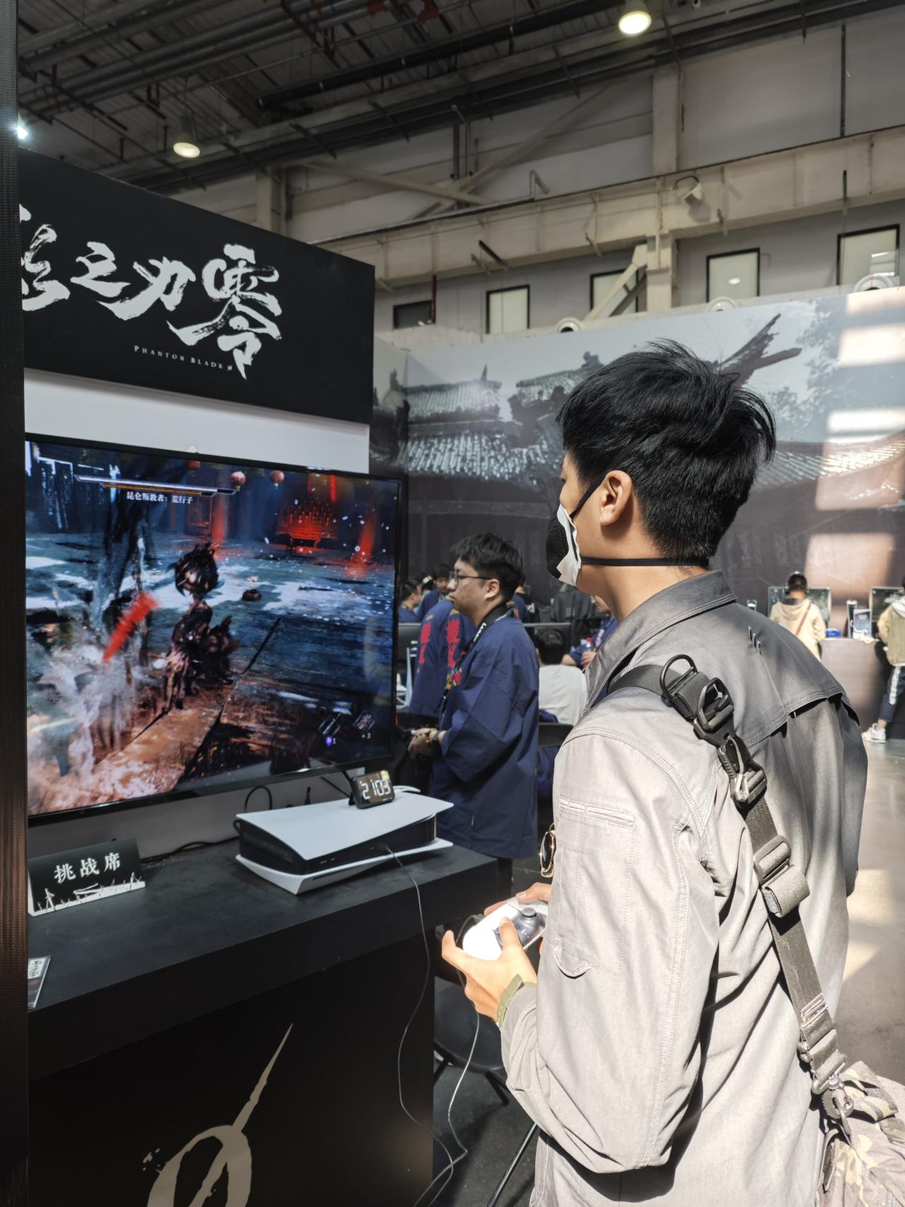 引領排隊的志願者小哥說是要排兩小時,實際上一個小時就排到了。現場除了黑猴,就數影之刃的試玩設備數量最多(再就是萬物契約)。一眼望去全是PS5,感覺被遊戲機海包圍了
