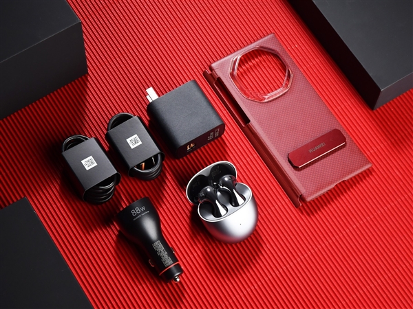配件方面,華爲Mate XT 非凡大師包裝內附帶了華爲SuperCharge充電器、華爲SuperCharge車載充電器、Type-C數據線、Freebuds5 耳機、旋轉支架保護殼,這裏咱們聊一下這個旋轉支架保護殼。