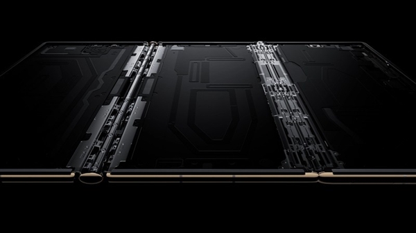 爲了確保Mate XT 非凡大師擁有極致纖薄的手感,華爲創新性地引入了內折鉸鏈的嵌入式滑軌結構和外折鉸鏈的一體連桿結構。這一創新設計使得Mate XT 非凡大師在展開時最薄處僅爲3.6毫米,爲用戶帶來了行業罕見的超薄體驗。