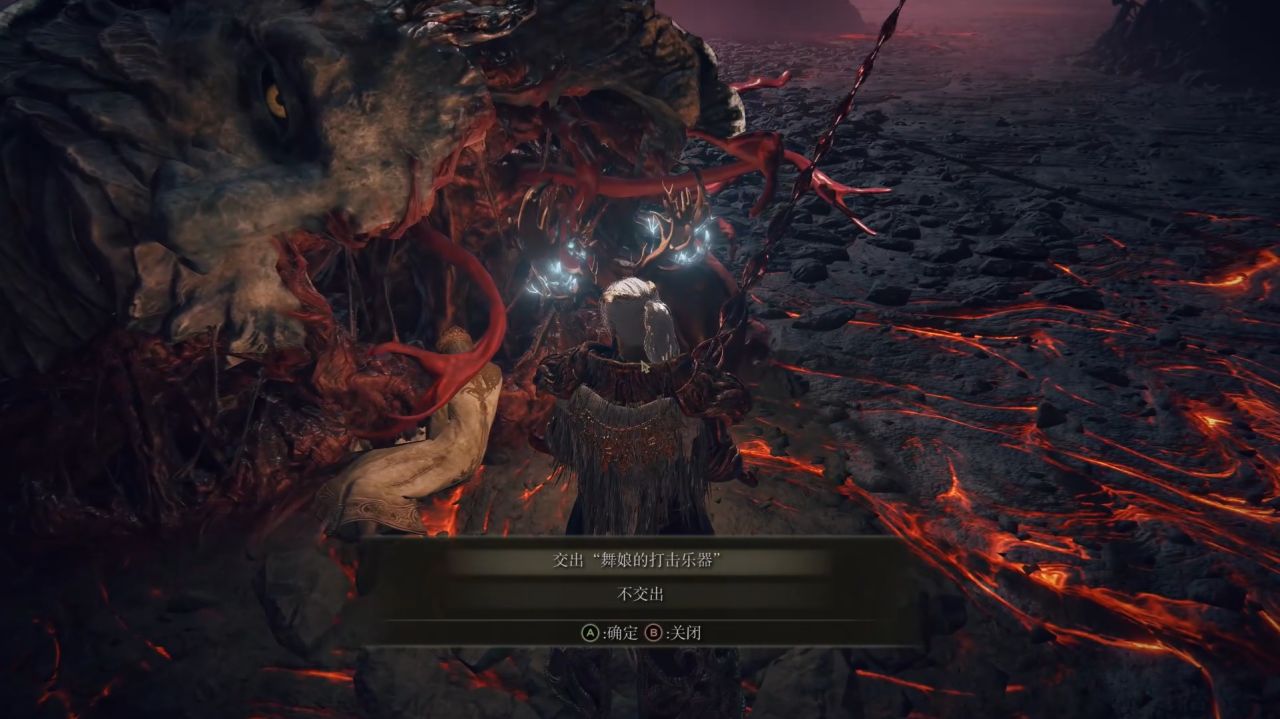 不久之後,帕奇就看到見着火星子的褪色者大步向前朝他走來,……沒想到又遇見你啦。哦,我大概知道你想說什麼,但是我可沒說謊喔。只要被抓去火山再逃出來的話,那邊就是黃金樹的樹腳下啊。帕奇瘋狂的解釋,大腦在恐懼下瘋狂運轉,以至於嘴巴都跟不上大腦的速度,一向伶牙俐齒的帕奇在這時也結巴了,對、對啦…… 可能是我解釋得不夠清楚啦……但我沒說謊啊,你也平安無事。 這就是圓滿落幕、皆大歡喜啊,對不對?