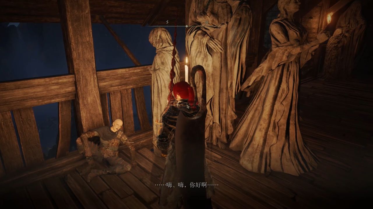 嗨、嗨,你回來啦。帕奇慌張地揮舞着雙手,剛纔抱歉啦,我本來想要警告你, 沒想到你竟然掉下去了。雖然說是弄巧成拙,抱歉給你添了麻煩。但是啊,你也平安無事嘛。 這樣不算數啊,不算數。而且我說的警告是真的。勸你別靠近火山官邸,聽說那羣人正在狩獵褪色者啊。嘿嘿嘿……