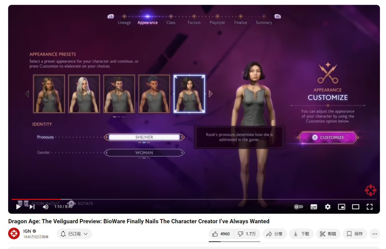 《龍騰世紀:影障守護者》角色創建視頻發佈後,在社交媒體上被國外玩家批評和嘲笑。X上一名女玩家@MadamSavvy在看過後表示非常不理解,她不明白《龍騰世紀:影障守護者》的捏人是爲誰準備的,至少不是爲她這個女玩家準備的……