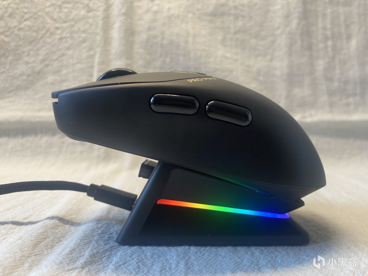 当然,如果你桌上并不缺桌搭,而且也不喜欢触点充电的话,那么,雷柏还有无线充电DLC,自从VT9系列就开始支持了,如果你有支持Qi协议的无线充电板的话,每次用完鼠标顺手往充电板上一放,就可以开始充电了。