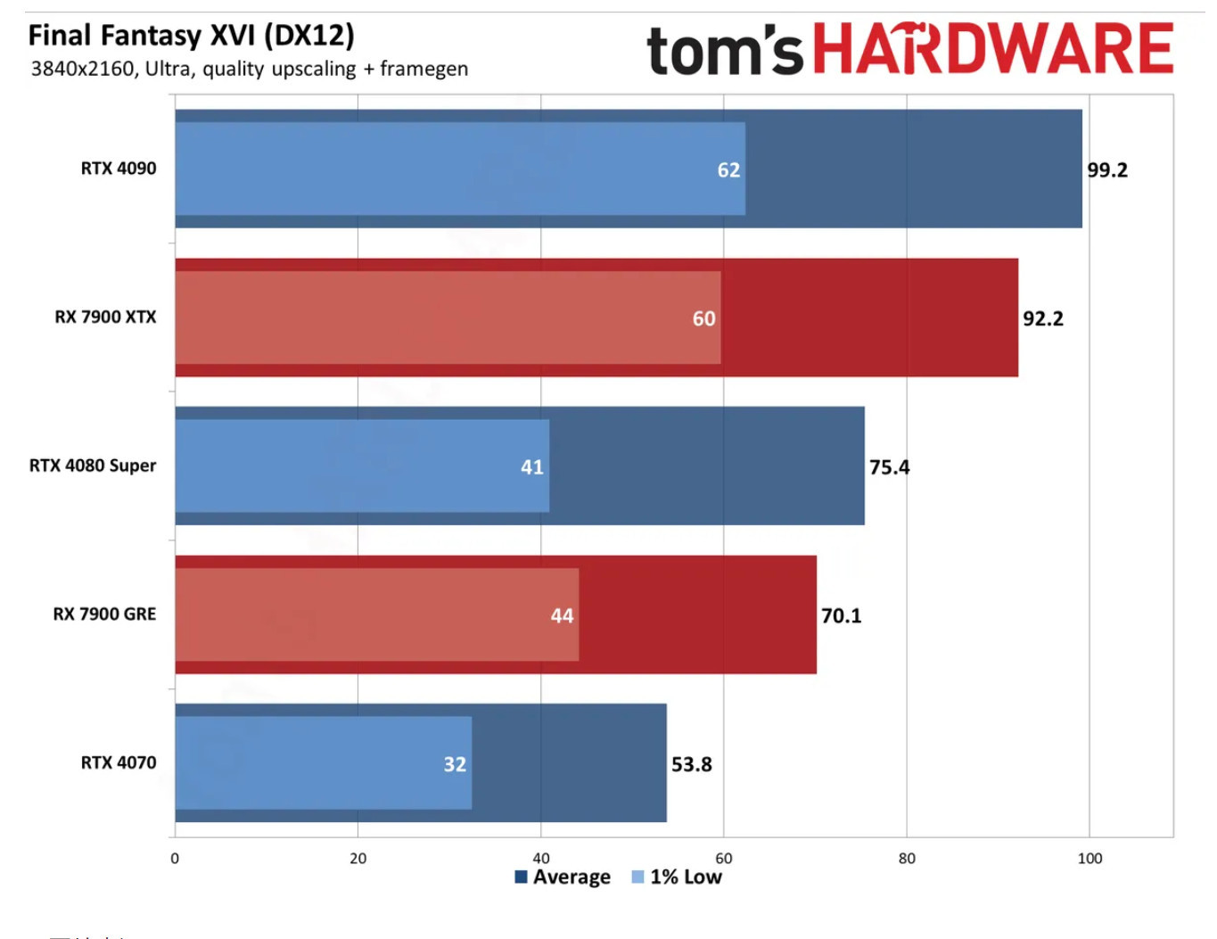 《最终幻想16》PC版基准测试:优化很烂,大量GPU需要帧生成才能达到60fps