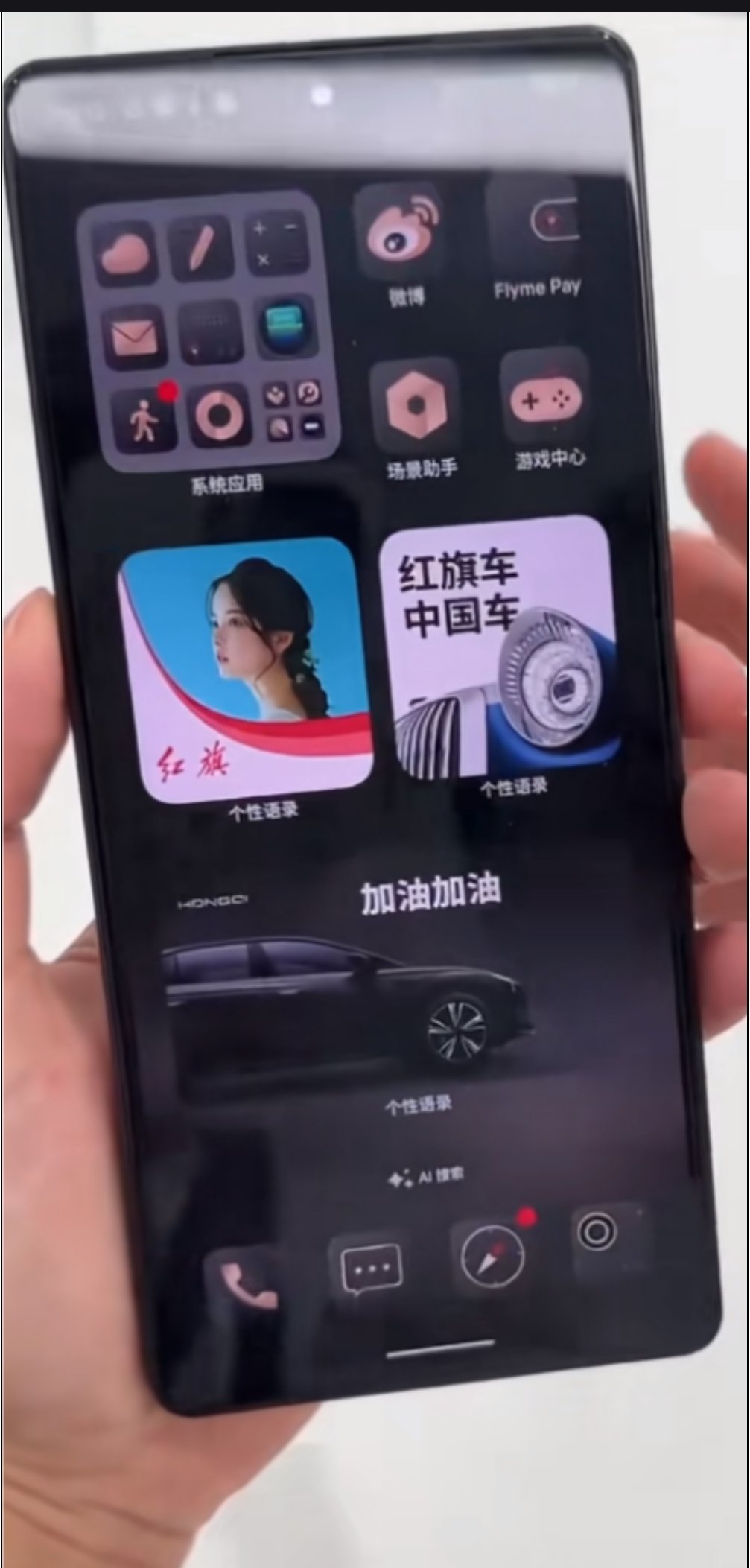 此外,紅旗手機的系統UI也進行了深度定製,提供了紅旗智聯等應用,以增強與紅旗汽車的互聯互通體驗。