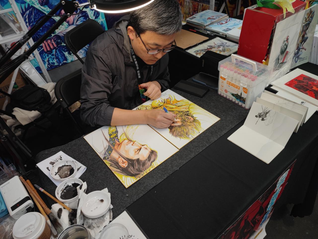去逛了販售區,看到了老師在畫“小情侶”。超級厲害