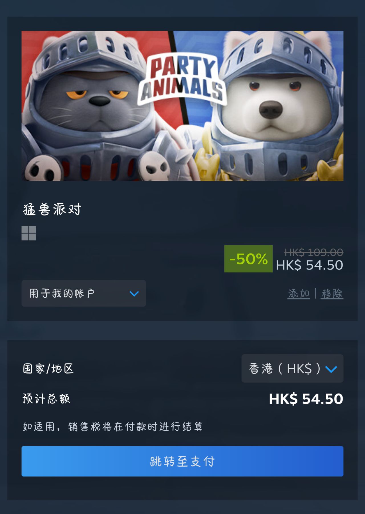4.这时候我们就来到了港服商店了,但是还没结束。去Steam商店任意添加一款游戏到购物车,之后去结账。注意国家/地区那里一定是香港!!!之后点击跳转至支付,支付宝、微信支付、余额都可以,支付成功后就成功转区了