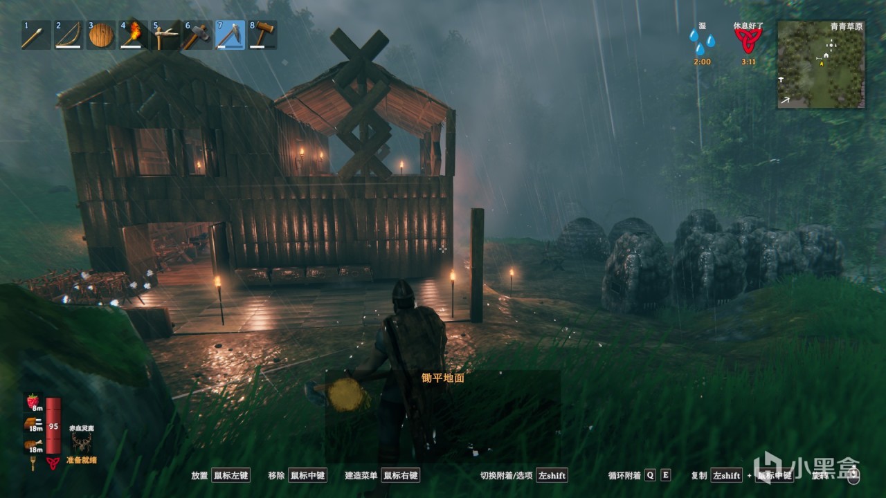 從祭壇醒來和福金對完話就該收集物資了,初始物資需要木材和石頭,兩者均可在地上收集,木材也可以通過手打樹苗掉落。
