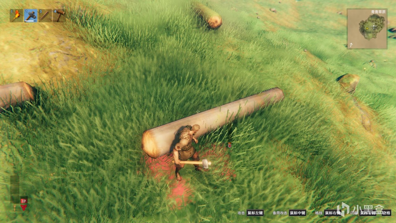 現在出門繼續收集物資,首先砍一些樹,在樹木被砍斷後觀察倒地的方向並做好躲避,不然有可能因爲感受到大樹的動能在遊戲裏第一次暴斃。