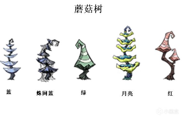 ①蘑菇樹自然生成於洞穴內。有3種顏色的蘑菇樹,分別是紅蘑菇樹、綠蘑菇樹、藍蘑菇樹。
