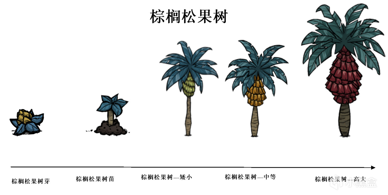 ②棕櫚松果樹高大階段砍伐會掉落鱗片,製作大炮和碼頭材料。