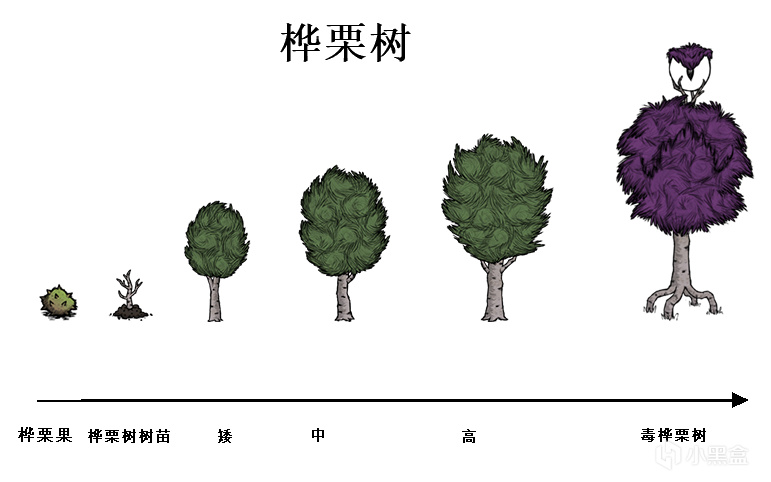 ③在冬季以外的季節砍伐高大階段的樺慄樹,會有幾率使得周圍 30 距離單位內的隨機 3-4 棵中等階段的樺慄樹變爲毒樺慄樹。