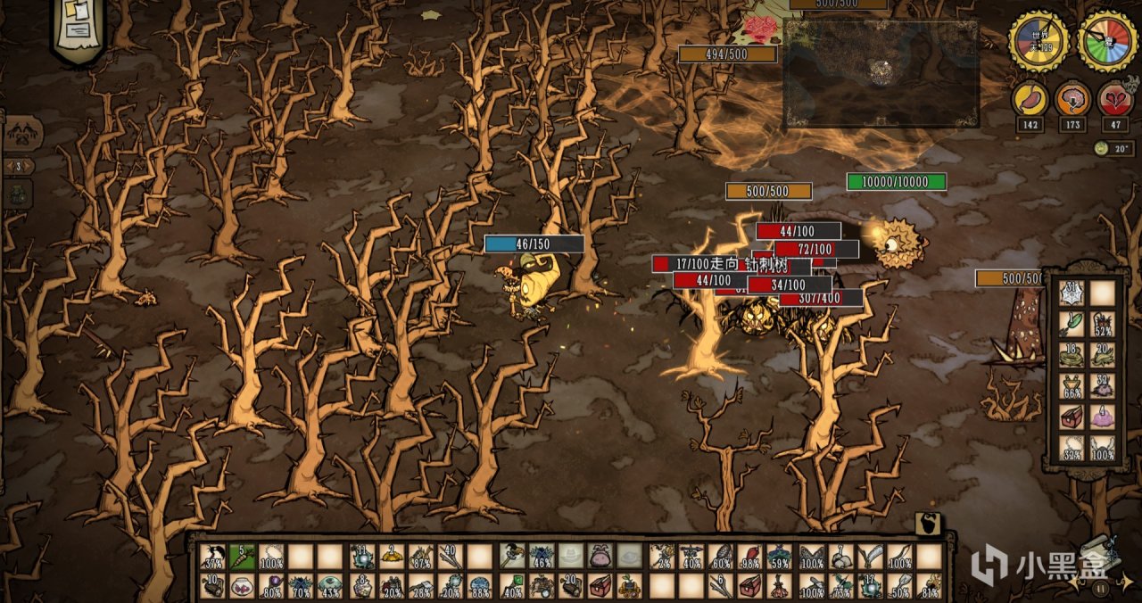 ②沃姆伍德(植物人)在學習了“樹苗製造”技能後,消耗 5 點生命值和 5 個樹枝來製作。