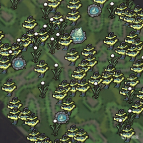 ③蛛網藍蘑菇樹是藍蘑菇樹的變種,每個穴居懸蛛巢穴會將周圍的藍蘑菇樹轉化爲蛛網藍蘑菇樹。