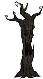 ①完全正常的樹砍伐後掉落2個活木頭,並有額外25%的概率掉落清潔掃把。用鏟子挖掘樹樁以獲得第三個活木頭。周圍會生成隨機數量的邪惡花。