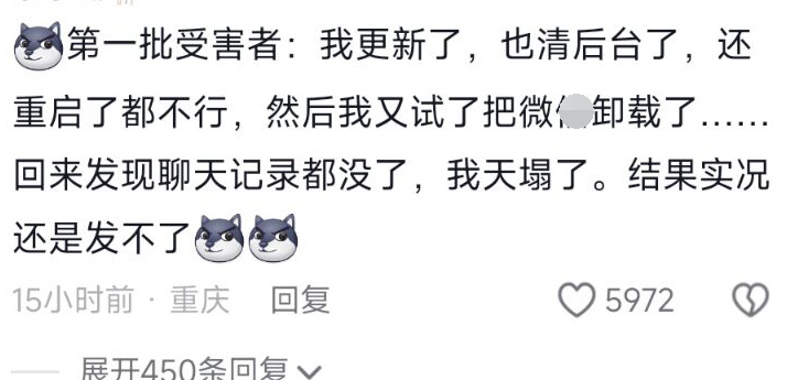 更新了,清后台了,聊天记录全没了,然后还是发不了实况。