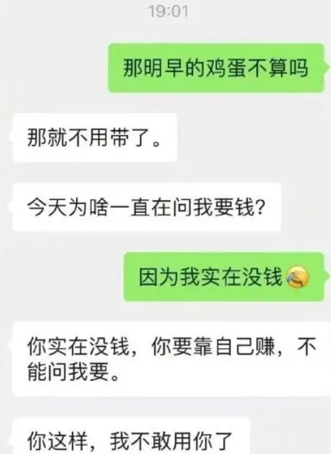 要求员工给带饭但不给钱的领导被开除
