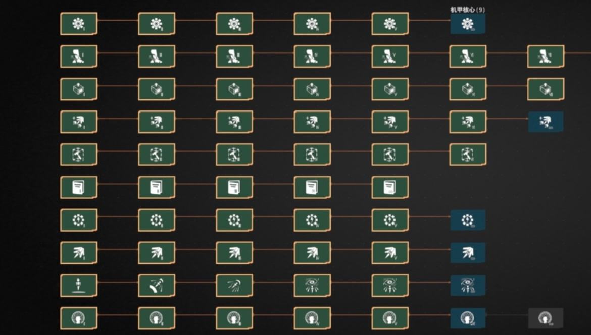 遊戲內科技樹解鎖會對應有新材料、新建築、新公式的解鎖,你可以自由選擇科技樹的解鎖順序憑藉着你對遊戲的理解,但你又受限於科技樹的解鎖,因爲一個樹枝的生長會需要到另一個樹枝的果實,科技樹每個樹枝的“生長”速度會大致齊頭並進,除開一些類似“增產劑”這種輔助樹枝完全不生長也不會影響遊戲進程。