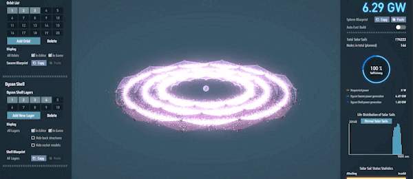 遊戲後期慢慢解鎖發射太陽帆以此形成戴森雲進一步合成戴森球,想要一個讓人眼前一亮的戴森球還是需要時間佈置的,網上有很多漂亮有創意的設計,可以搜一搜汲取一點思路。