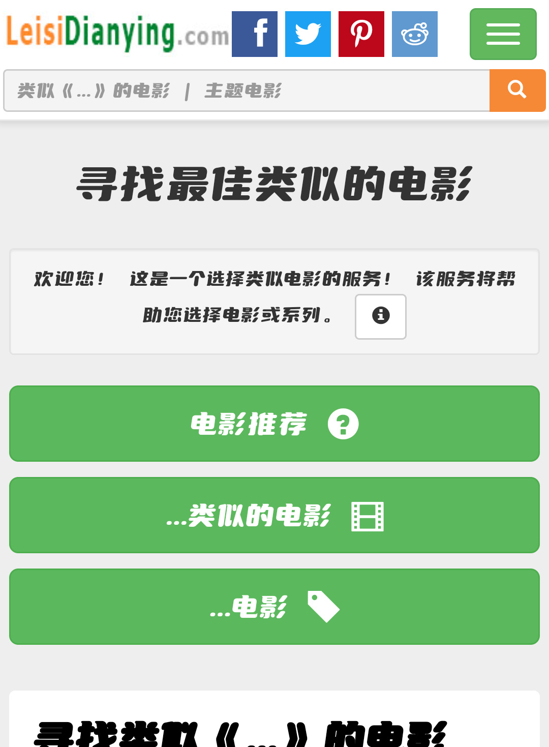 一个类似于电影推荐工具的网站,主要功能是帮助用户找到与他们喜欢的电影相似的作品。用户只需输入自己喜欢的电影名称,该网站就能自动生成类似电影的列表。此外,该网站还根据不同的主题(如风格、主题、受众、时间和地点)对电影进行分类,从而为用户提供更精准的推荐。