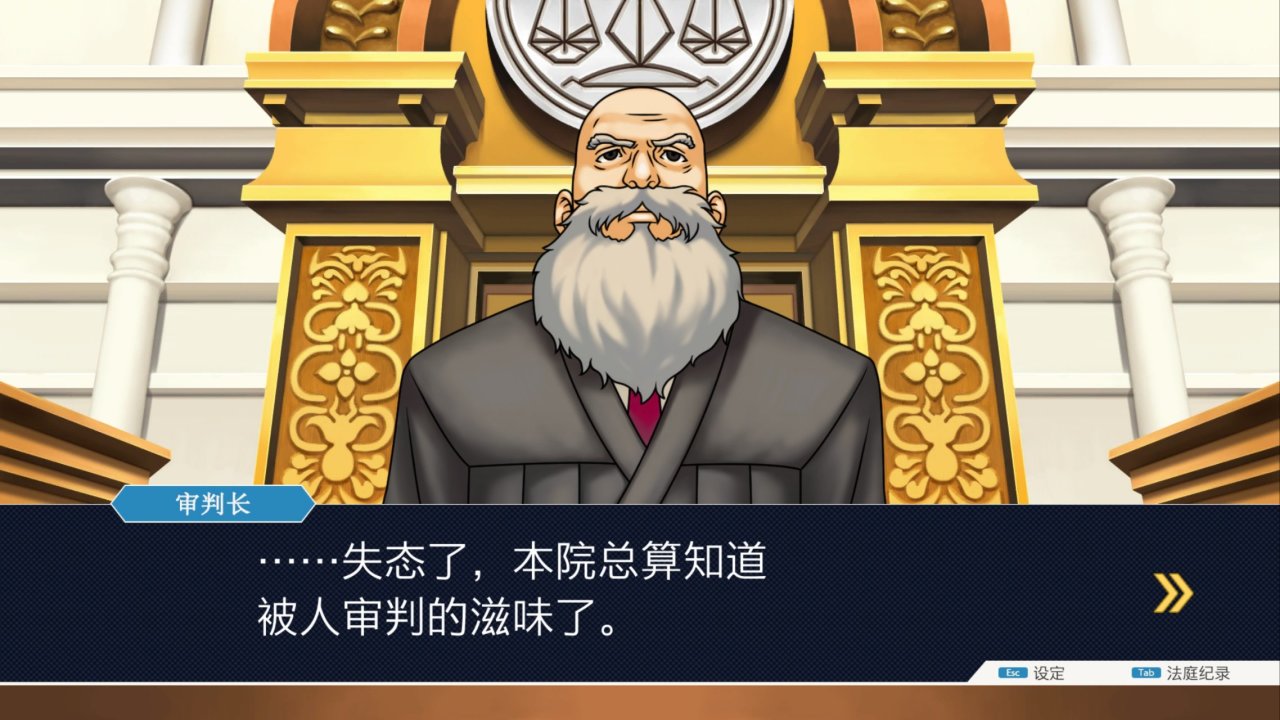 1.1章和1.2章在開頭過場就揭露了行兇的犯人是誰,對玩家而言相當於明牌推理,實際上這麼敘事可以說是爲1.4做好了鋪墊,因爲1.4開頭過場就可以看到御劍一臉懵逼的拿着手槍,儼然一副行兇者的樣子(你個濃眉大眼的也犯罪了?),御劍從明星檢察官到殺人嫌犯的身份變化是1.4的精彩看點,此外,作爲檢方的狩魔的表現也是最強而有力的(我從未見過如此鏗鏘有力且臭不要臉的“異議”)