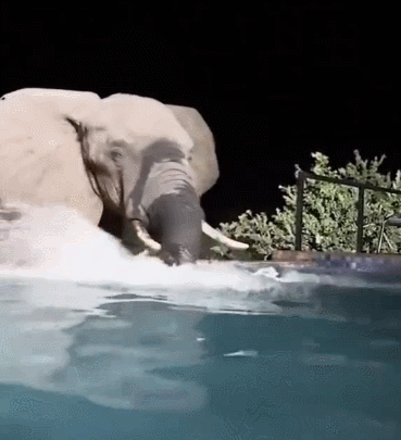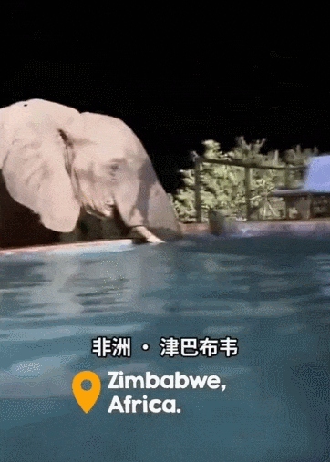 近日,一對情侶在非洲津巴布韋的酒店泳池夜泳,突然遇到不速之客來蹭水喝...