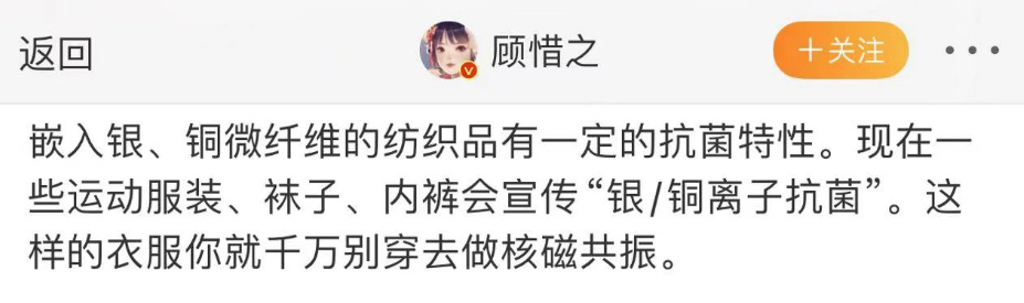 18日,有博主發帖稱穿瑜伽褲不能做核磁共振,因爲褲子裏有金屬纖維,會灼傷人體。