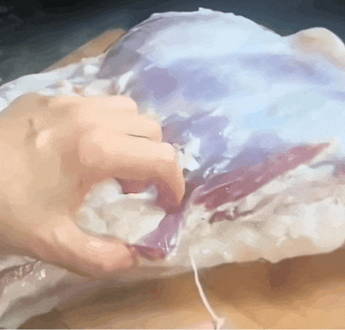 當拆開肉上的軟紮帶時,發現裏面全是肥肉。