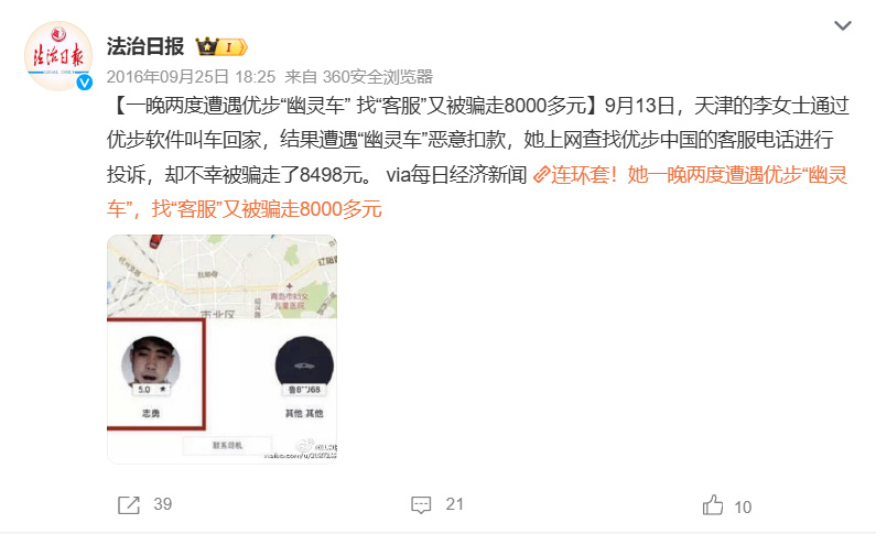 但举报也得先举报到优步的客服那里讨回损失,怎么先出手的会是媒体呢?