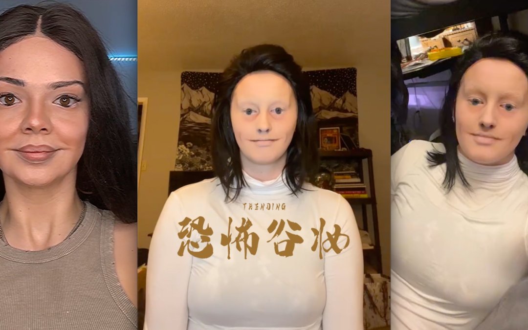 再比如在外网tiktok成为了趋势的恐怖谷伪人妆容。