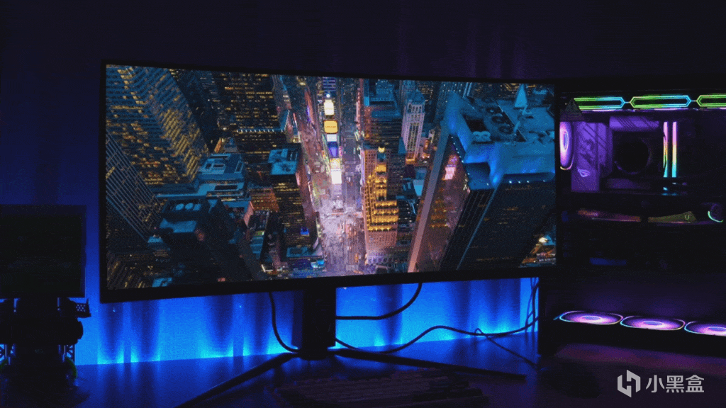 在這款顯示器之前我用的是一臺IPS面板顯示器,需要背光源發光,即使顯示屏顯示黑暗場景,LCD 仍然需要亮起,黑色可能看起來泛白泛灰,用手機拍攝可以看出很明顯的漏光現象。而QD-OLED面板爲有機發光二極管,可控像素調光級別,不需要像傳統LCD那樣使用背光單元來驅動背光的開關,顯示黑色場景時不需要亮起,所呈現的黑色非常純淨。