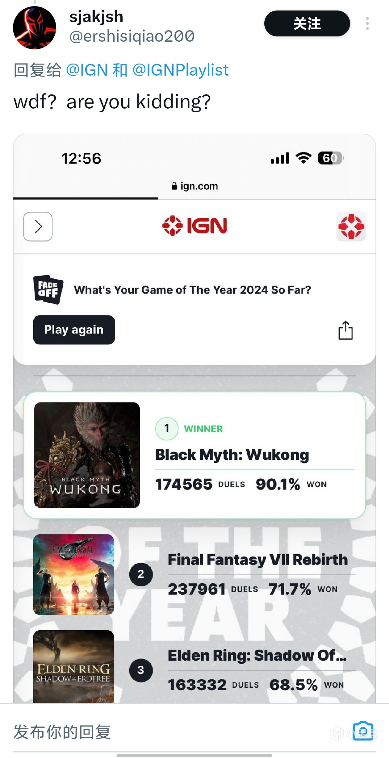 緊隨其後的是IGN的各種小動作和騷操作,先是在推特發帖稱《最終幻想Ⅶ:重生》纔是IGN社區頂級遊戲。