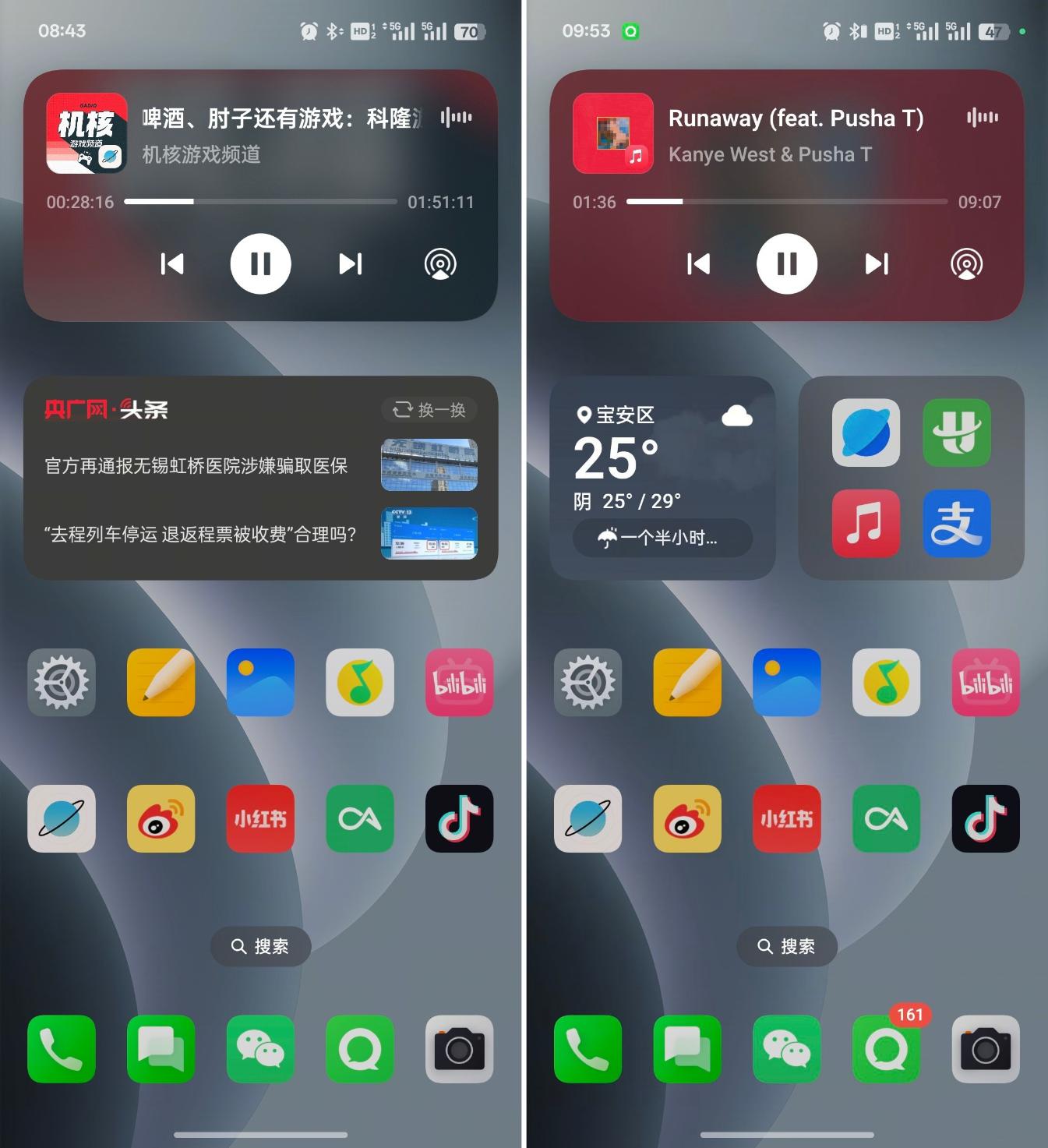 同時,新版本爲流體雲加入了大量的非線性動畫,讓其在顯示不同內容時,變化更加靈活,動效更加舒適。